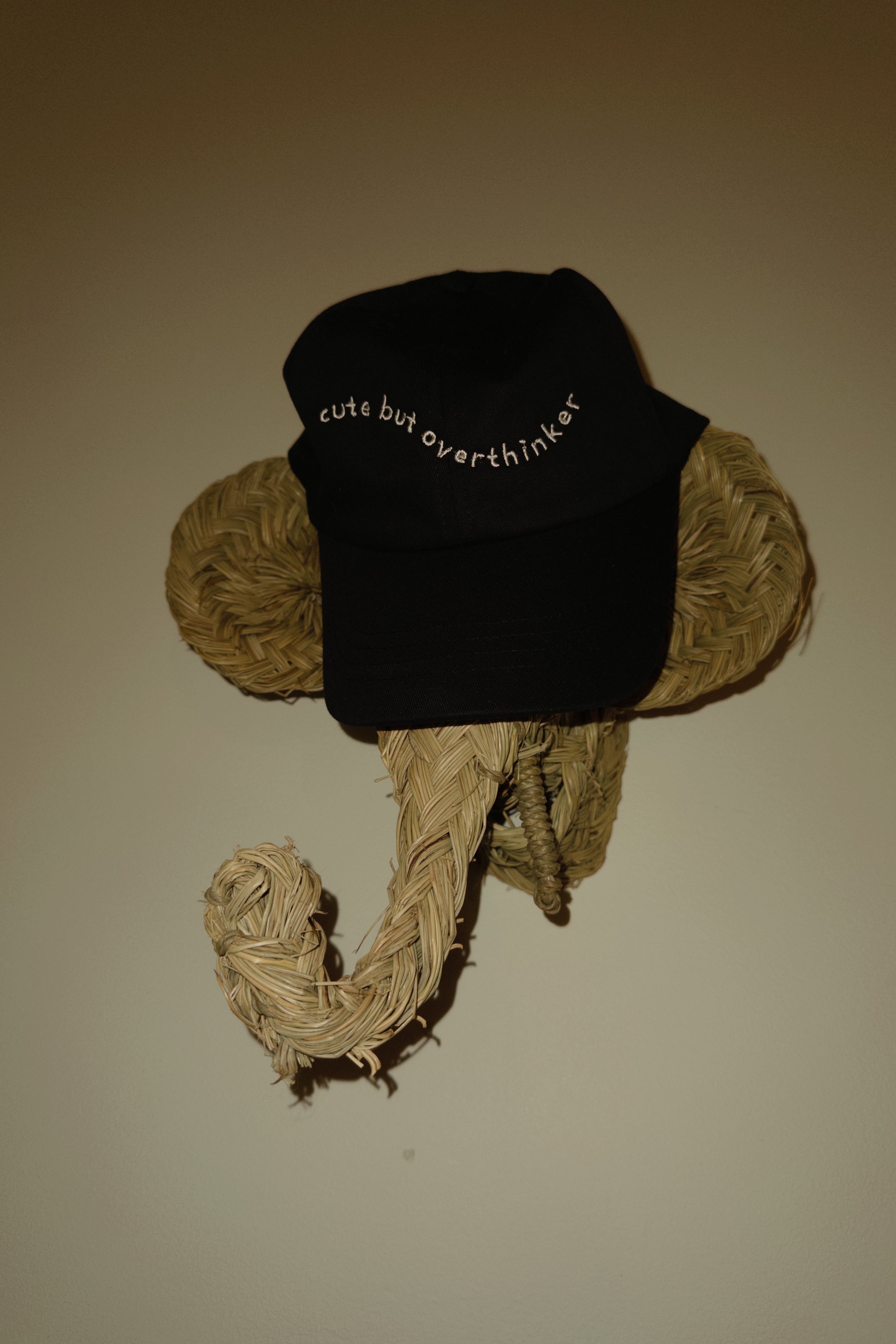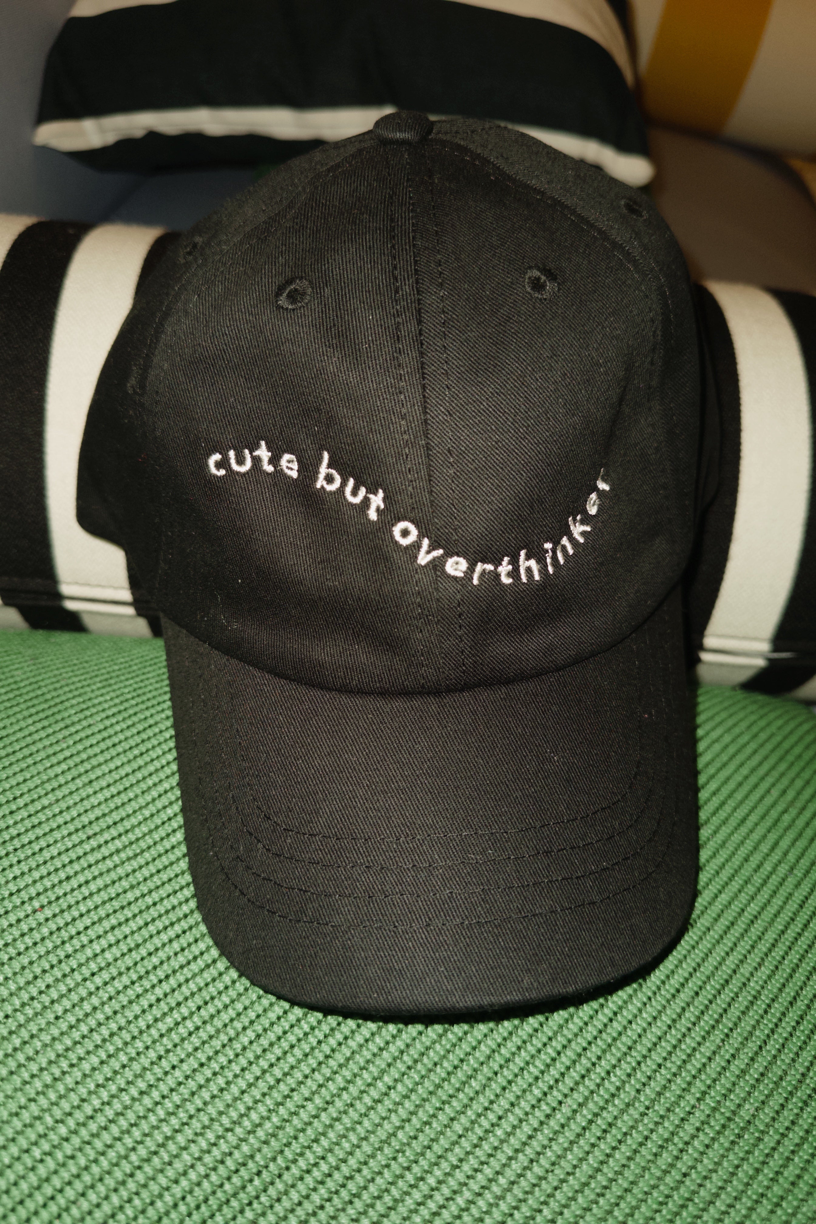 Dad's cap fit black organic cotton fabric, and off white text.